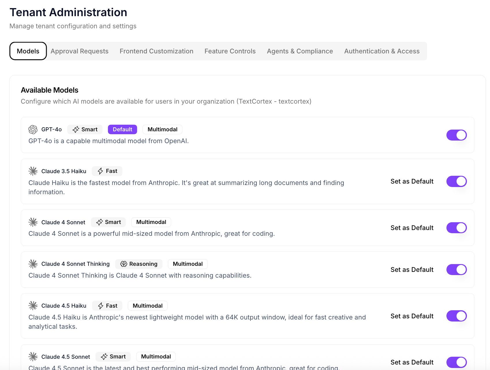 - Enable these models on-demand by toggling them on for your users