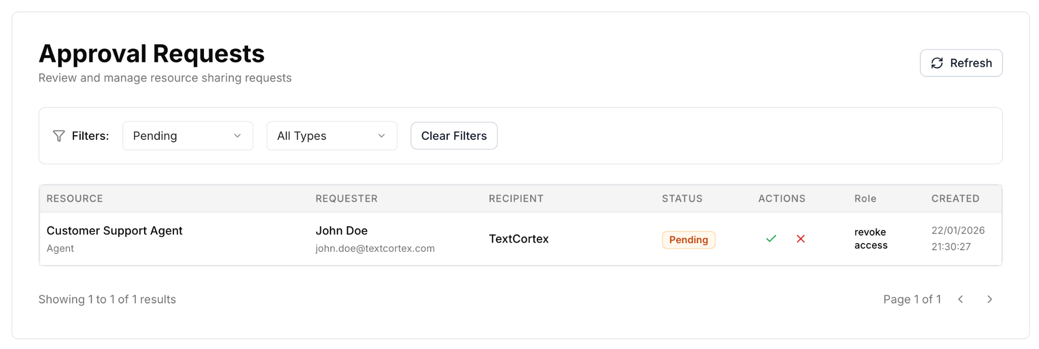Manage and review all resource sharing requests from your users.