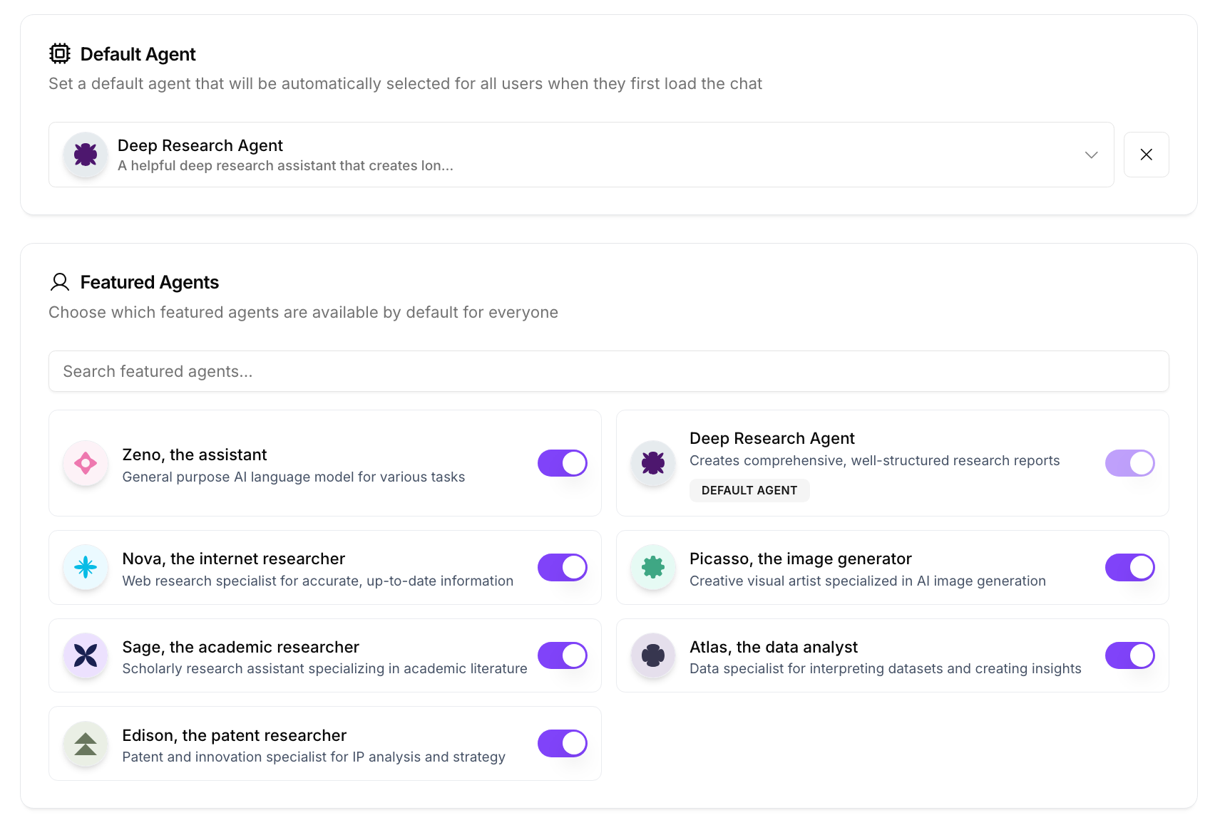 - Default Agent: Set a default agent that greets users upon login